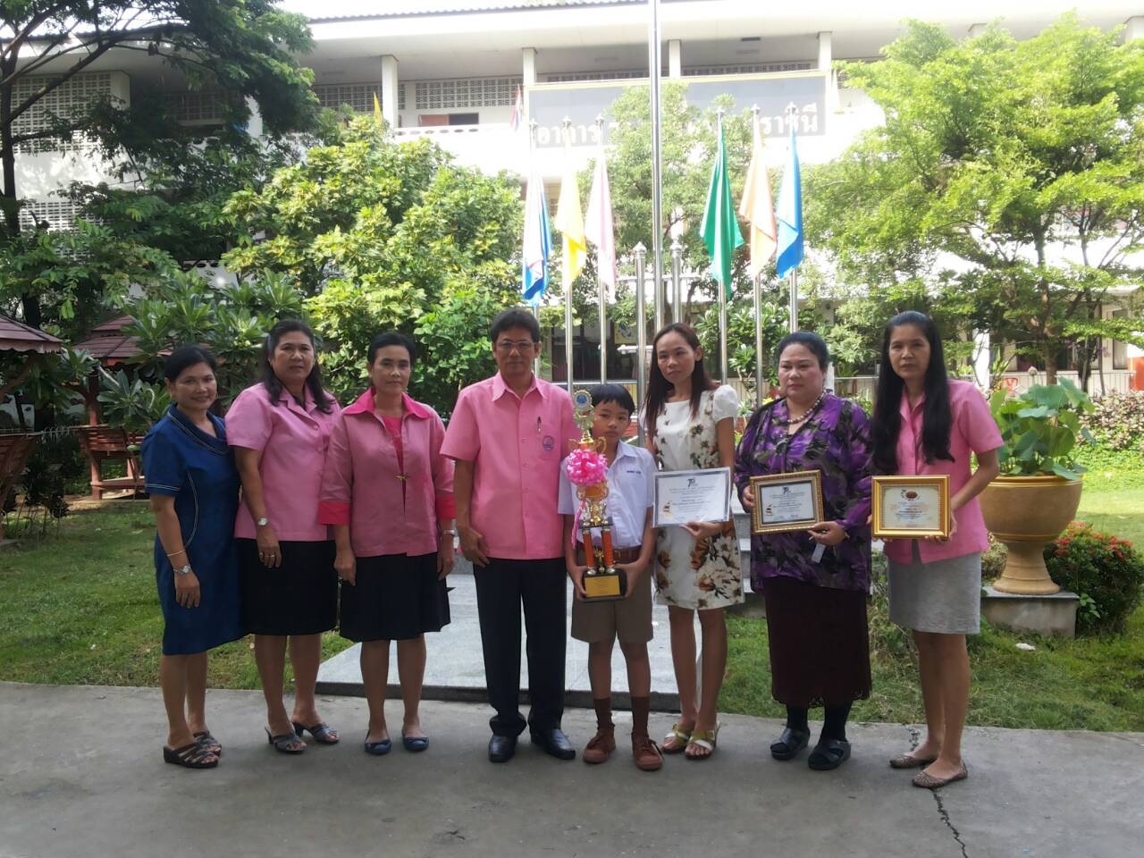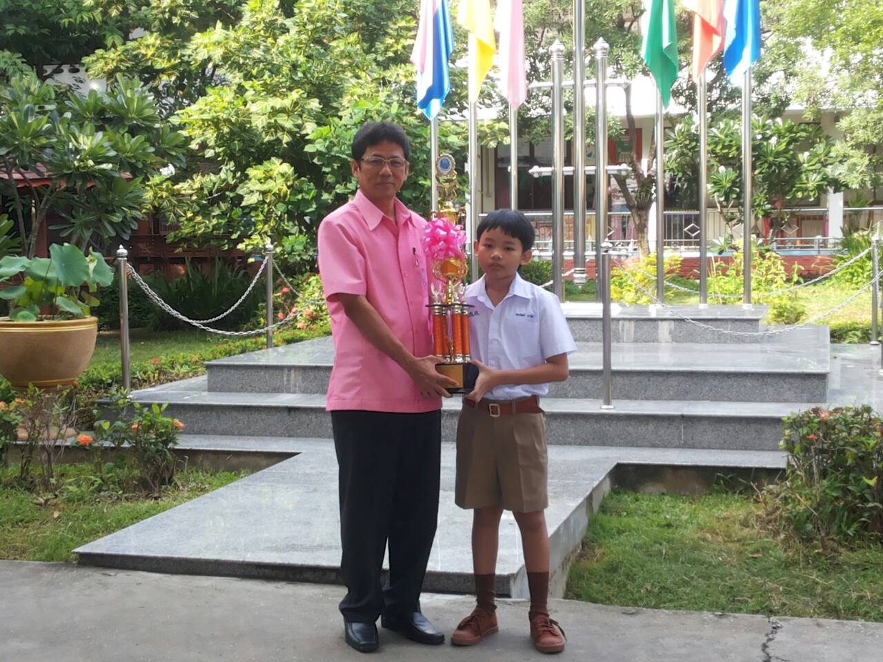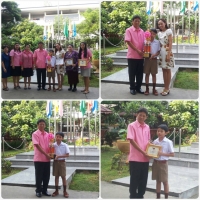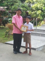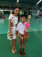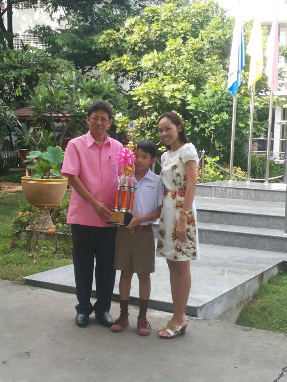 มอบถ้วยรางวัลและเกียรติบัตรให้กับเด็กชายธนวัฒน์ นาวัน