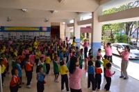 บุคลากรในโรงเรียนและนักเรียนโรงเรียนบ้านคลองหลวงได้เข้าร่วมกิจกรรมโดยพร้อมเพียงกัน
