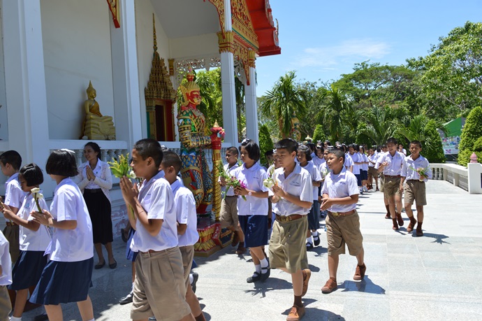 ได้นำคณะครูและบุคลากร และนักเรียนชั้นประถมศึกษาปีที่ 6 ไปร่วมทำบุญ ณ
