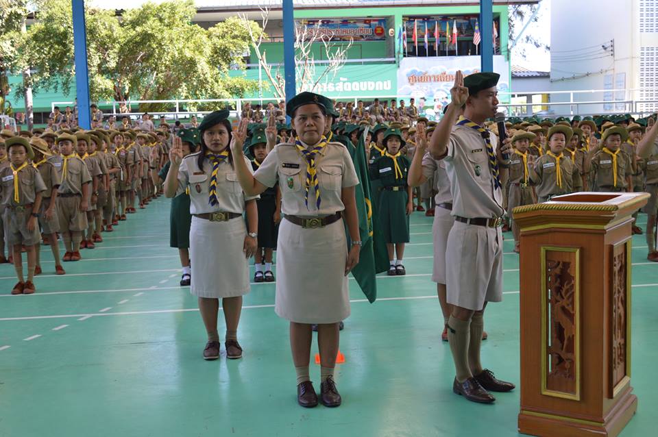 และกล่าวทบทวนคำปฏิญาณต่อองค์พระประมุขคณะลูกเสือแห่งชาติ