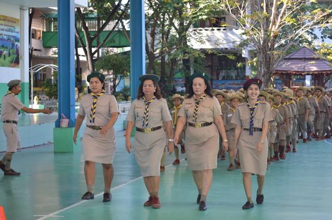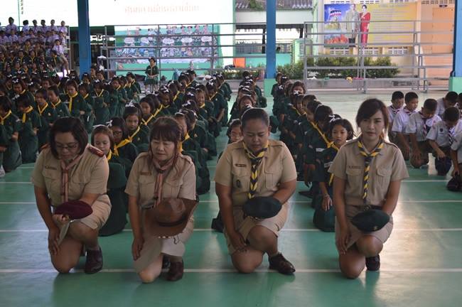 ลูกเสือ เนตรนารี ถวายพวงมาลาและถวายราชดุดี เพื่อน้อมรำลึกถึงพระมหากรุณาธิคุณ