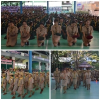 ลูกเสือ เนตรนารี ถวายพวงมาลาและถวายราชดุดี เพื่อน้อมรำลึกถึงพระมหากรุณาธิคุณ