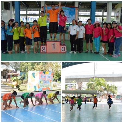 วิ่งทางตรงและวิ่งพลัด การจัดกิจกรรมกีฬาสีในครั้งนี้ ได้กำหนดนักเรียนออกเป็น 5 กลุ่มสี