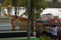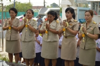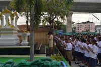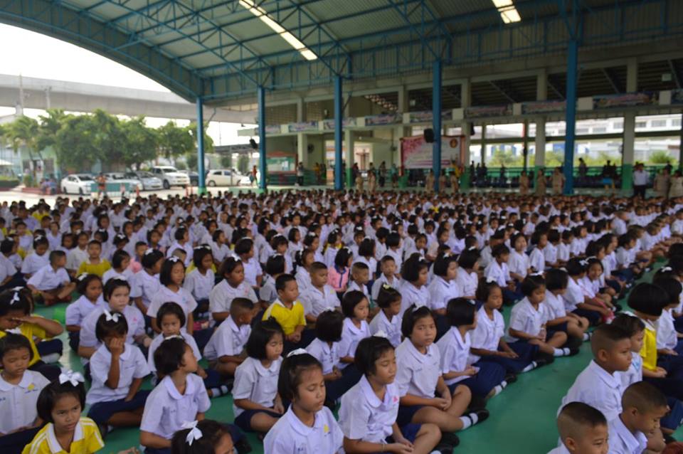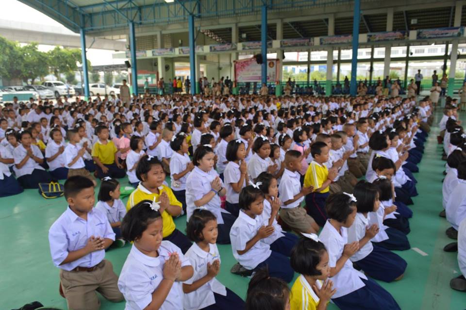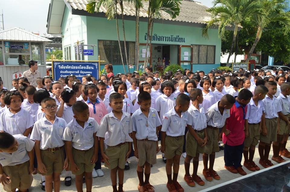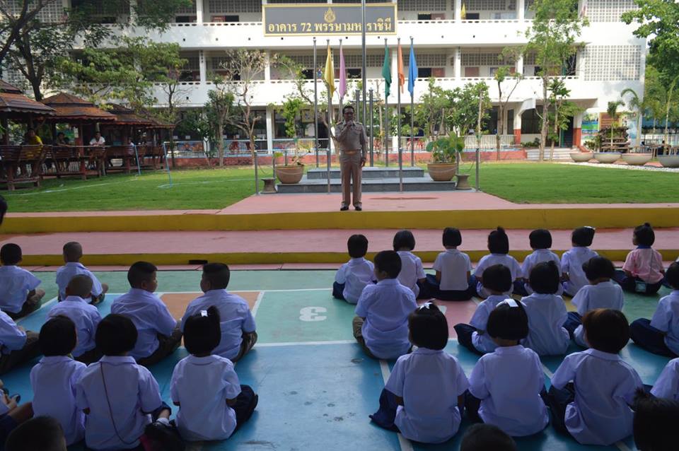 บุญมานะ ผู้อำนวยการโรงเรียนบ้านคลองหลวงได้ให้โอวาทกับนักเรียนทุกคนเนื่องในโอกาสที่เปิดภาคเรียนใหม่