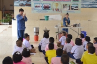 ครูบุญเลิศ ไทยทัตกุล มาให้ความรู้กับนักเรียนโรงเรียนบ้านคลองหลวง (กิตติมา:ภาพ/อรัญญา:ข่าว) |