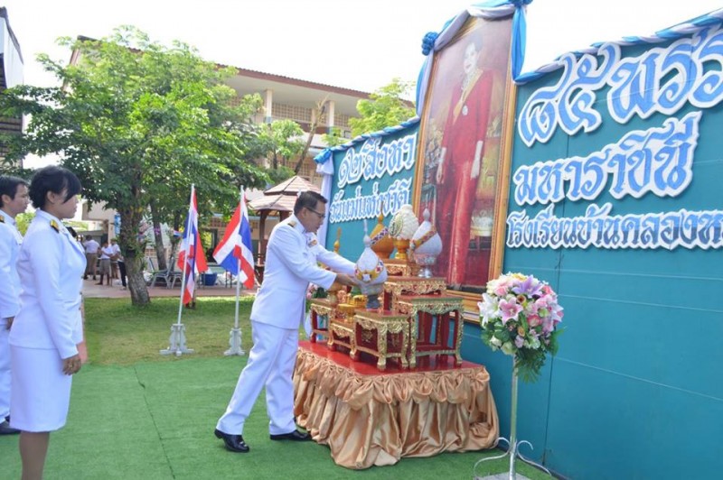 ว่าที่ร้อยตรีลมบล บุญมานะ ผู้อำนวยการโรงเรียนบ้านคลองหลวง และนายวิชิต ยาก่ำ รองผู้อำนวยการโรงเรียนบ้านคลองหลวง ซึ่งในพิธีช่วงเช้าได้มีการนิมนต์พระจำนวน 9 รูป มารับบิณฑบาต และในช่วงสายของวันนี้ได้มีการนำนักเรียนและบุคลากรโรงเรียนบ้านคลองหลวงลงนามถวายพระพร ทั้งนี้เพื่อเป็นการน้อมสำนึกในพระมหากรุณาธิคุณที่พระองค์ทรงมีต่อพสกนิกรชาวไทยอย่างหาที่สุดมิได้